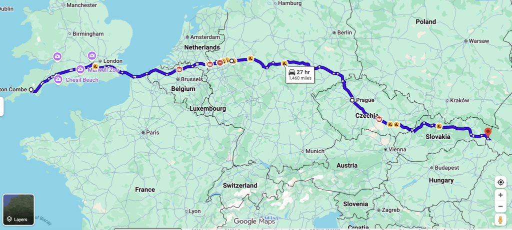 The 1500 mile journey usually takes three days, leaving bright and early from Plymouth to Dover ferries or Eurotunnel. The first evening is spent in Germany.